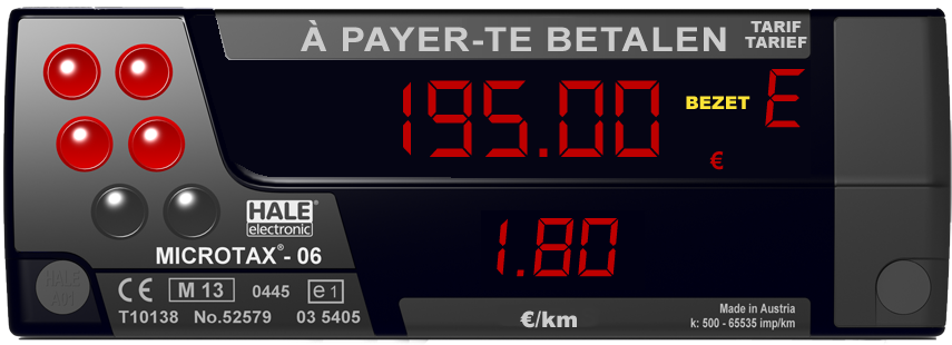 Ok, tarief D voor Zaventem en tarief E voor Charleroi. Om bij tarief E te komen drukt u ook op toets 2 van de taxameter. U houdt hem ingedrukt tot tarief D start en daarna drukt u 1 keer op toets 1 om door te schakelen naar tarief E.