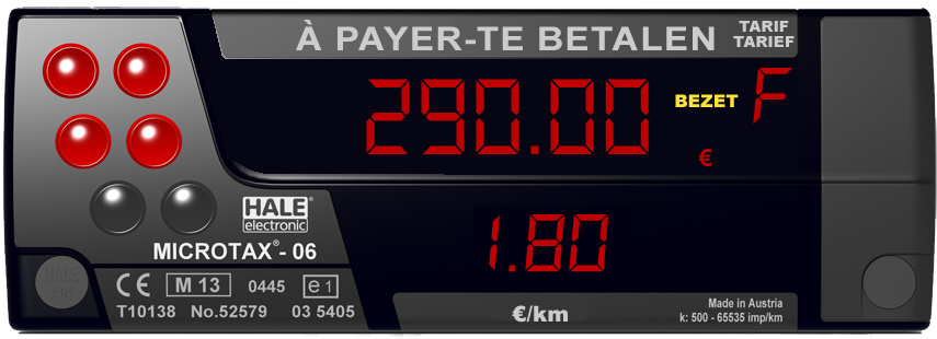 Voor tarief F, het tarief voor ritten naar de luchthaven Schiphol, geldt dat u, nadat u bij tarief D gekomen bent, 2 keer op toets 1 drukt om naar tarief F te gaan.